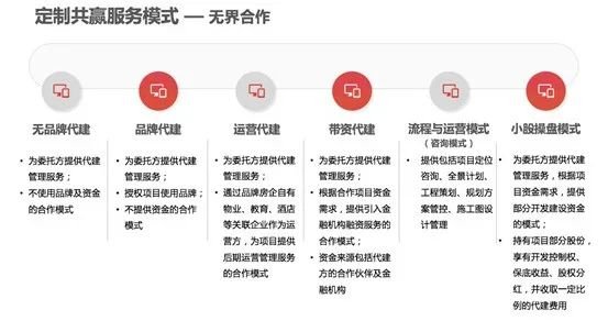 根据商业代建、政府代建及资本代建三大业务模式现已形成了无品牌代建、品牌代建、运营代建、带资代建、小股操盘及流程与运营咨询等多种合作模式,为合作伙伴提供定制化服务。将绿色科技、健康产品理念输出至代建业务中,塑造具有差异化的绿色人居产品,通过一种新的方式,助力绿色健康建筑产品发挥更大社会价值。