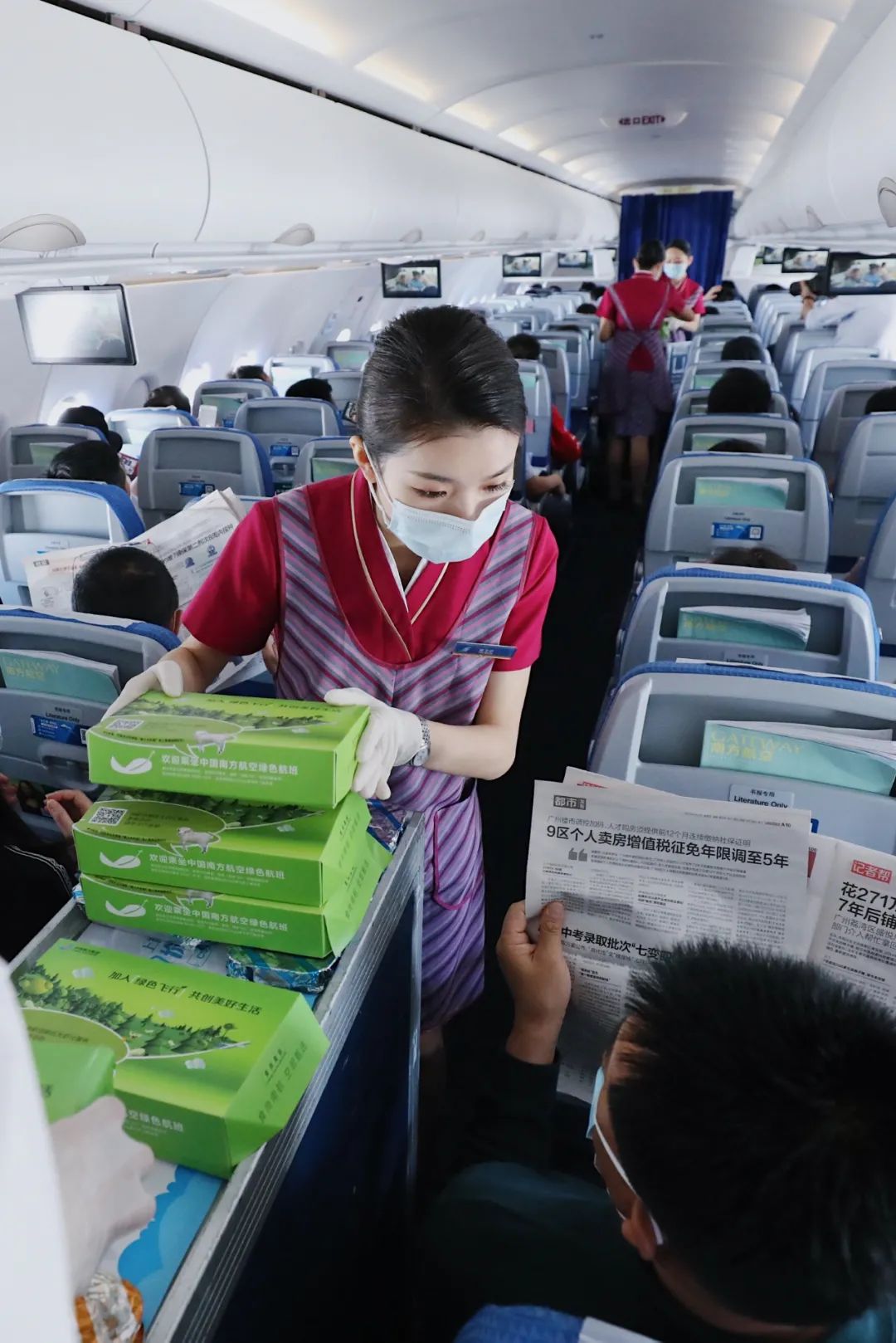 2019年,南航响应国家生态文明建设号召,在全球首推“绿色飞行”按需用餐服务。旅客在出行前6个小时,可以通过南方航空APP、微信、客服热线等渠道,提前选择不用餐,并可获得一定数额的南航里程奖励。