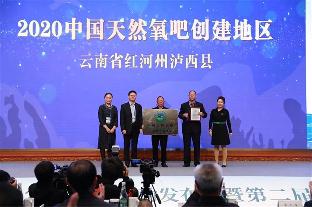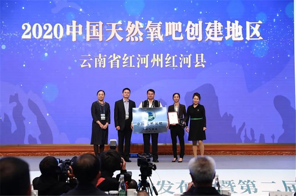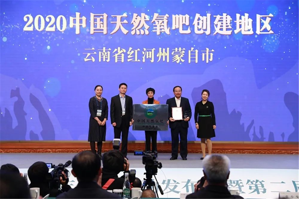 会议还对红河州“天然氧吧城市”进行授牌,罗萍、周踊代表红河州接牌。