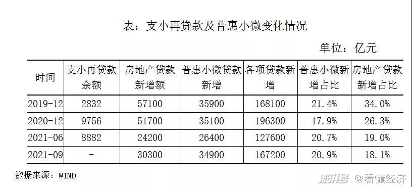 具有转折意义的是,2021年上半年,我国普惠小微贷款新增2.64万亿元,历史上首次超过房地产贷款新增量,占全部新增贷款的比重达到20.7%。普惠小微贷款成为贷款增长的最重要边际动力。2021年前三季度,普惠小微贷款新增占全部新增的比重达到20.9%,较房地产贷款新增占比高2.8个百分点。