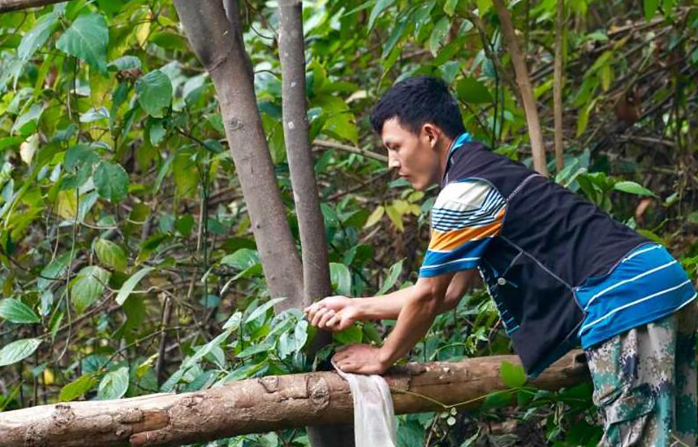傈僳族小伙蔡伍以前也是贫困户。2015年,他从科考队那里第一次听说“观鸟”可以致富。在县政府和观鸟协会的指导下,蔡伍等村民开始学习鸟类知识,建立鸟类观察点,开发了中国第一个双角犀鸟监测点、灰孔雀雉监测点、猛隼监测点,第一年就吸引了300多人来观鸟。
