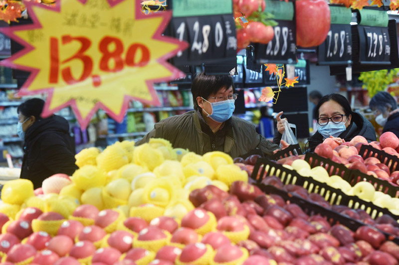 1月11日,顾客在杭州一家超市选购水果。新华社发(龙巍 摄)
