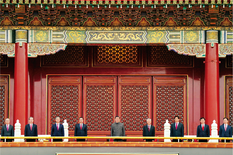 2021年7月1日,庆祝中国共产党成立100周年大会在北京天安门广场隆重举行。习近平、李克强、栗战书、汪洋、王沪宁、赵乐际、韩正、王岐山、胡锦涛等出席大会。新华社记者 殷博古/摄