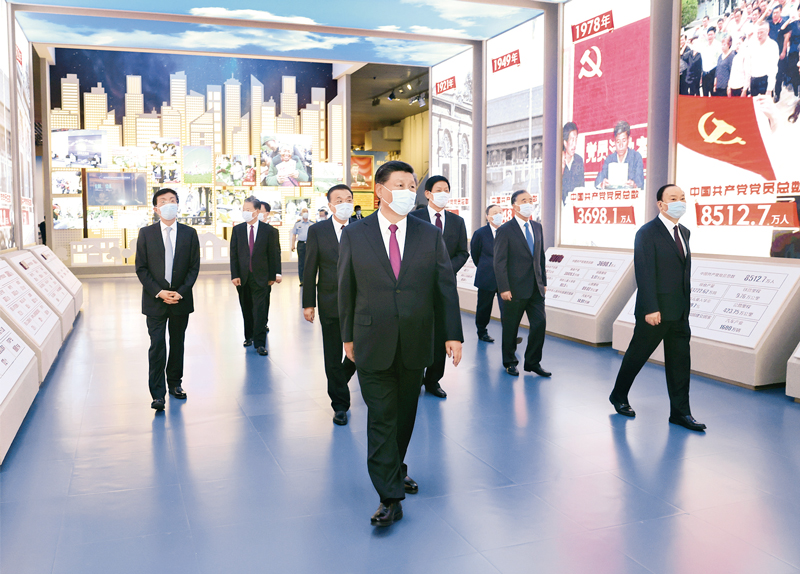 2021年6月18日,党和国家领导人习近平、李克强、栗战书、汪洋、王沪宁、赵乐际、韩正、王岐山等在中国共产党历史展览馆参观“‘不忘初心、牢记使命’中国共产党历史展览”。新华社记者 鞠鹏/摄