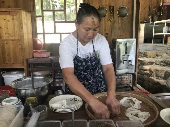 在丫山景区“九回头美食街”,乡嫂卢德风给游客做赣州美食“烫皮”。人民网记者 余璐摄。
