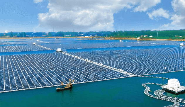 微山光伏电站采煤沉陷区水塘推行“渔光互补”模式,同步实现鱼类养殖和水域环境综合治理。