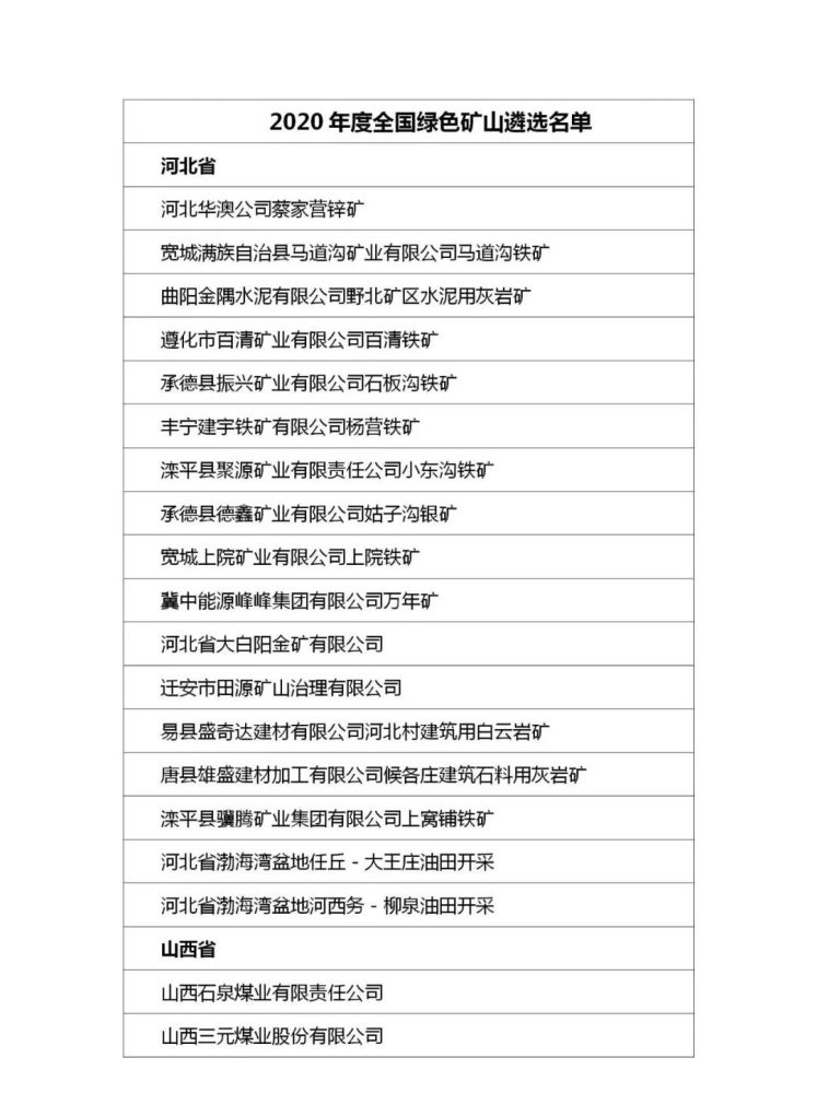 按照《自然资源部办公厅关于做好2020年度绿色矿山遴选工作的通知》(自然资办函〔2020〕839号)要求,在企业自评、第三方评估、省级核查推荐基础上,经审核,共有302家矿山通过遴选。