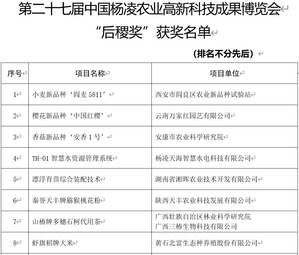 原标题:《第27届杨凌农高会闭幕 这140项农业科技项目获“后稷奖”》