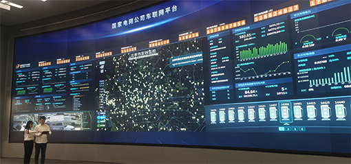国家电网公司技术人员通过智慧车联网平台实时监测分析经营区域内充电桩运营情况。