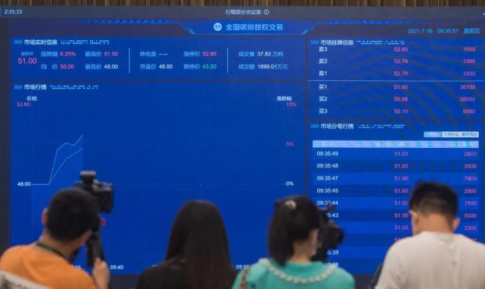 16日上午9时30分左右,全国碳排放权交易市场正式启动上线交易,全天交易总量超过410万吨。