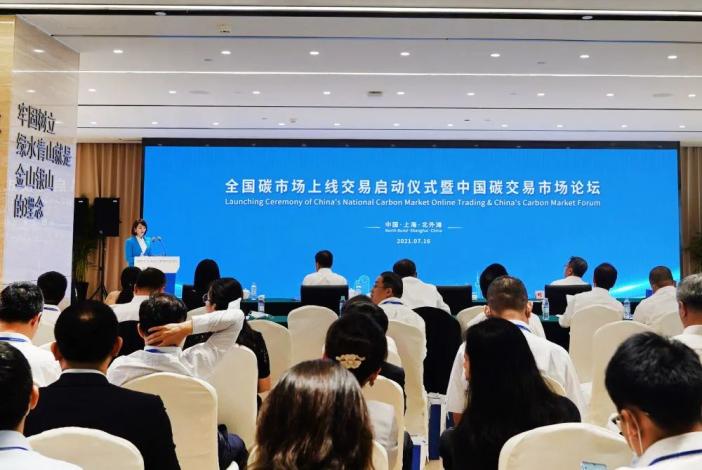 7月16日,全国碳市场上线交易启动仪式暨中国碳交易市场论坛在上海环境能源交易所举行。新华社记者 程思琪 摄