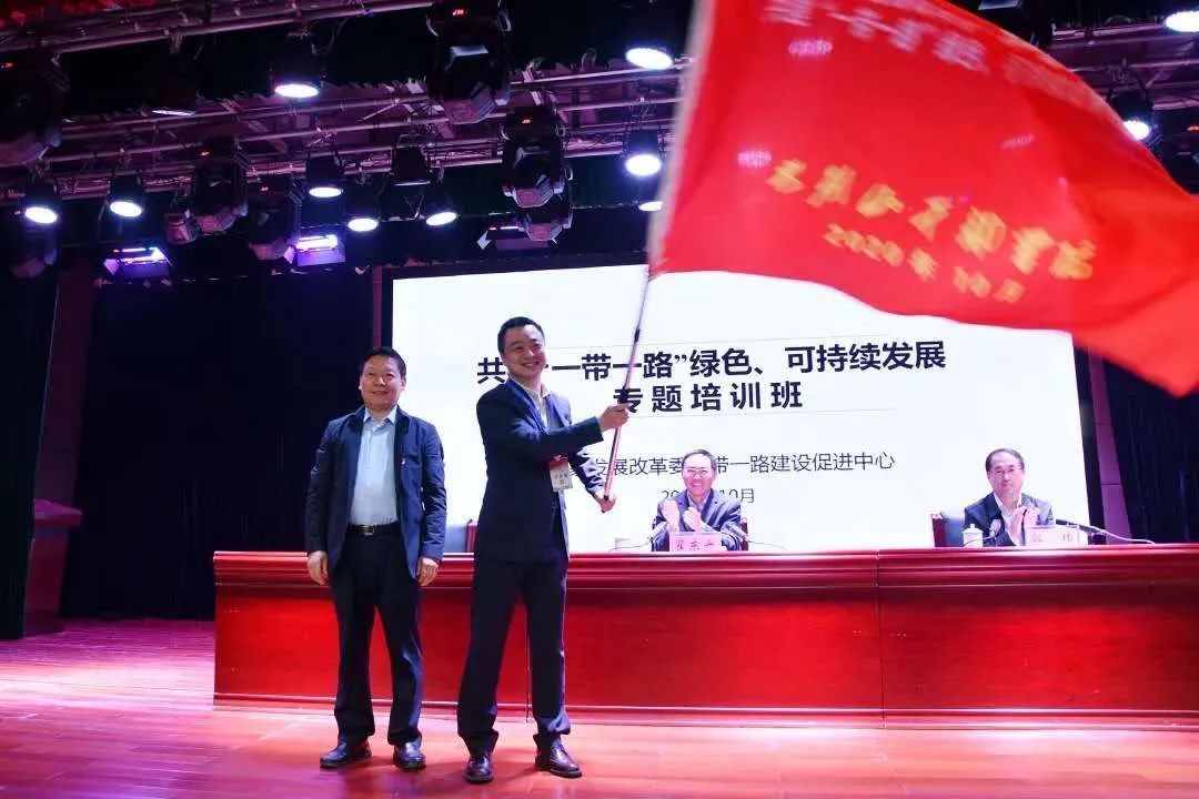 ▲ 共建“一带一路”绿色、可持续发展专题培训班开班授旗。(来源:中国一带一路网)