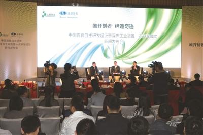 2016年4月15日,三聚环保在北京举行我国首套自主研发的超级悬浮床工业示范装置一次开车成功新闻发布会。(张育 摄)