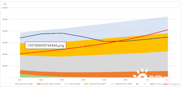 首先,看一下截至2050年能源市场的发展情况。请注意,尽管电气化程度不断提高,但低于400?C热能的年需求量,依然稳步保持在略高于10,000TWh的水平。