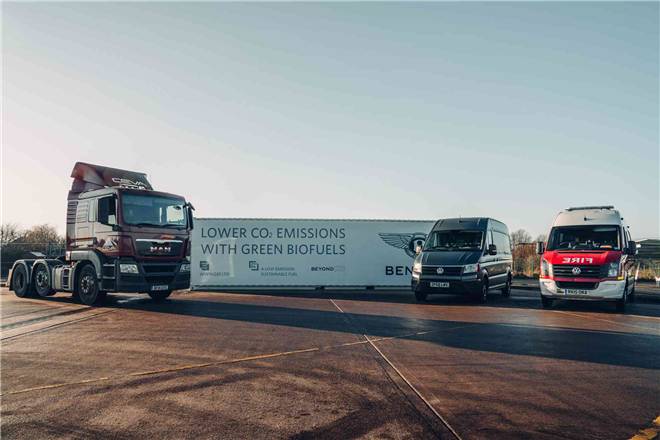 氢化植物油燃料作为第二代优质生物燃料,提取自废弃油脂、植物,以及其他油类物质。相较于传统燃料,氢化植物油燃料的应用可将以上物流车辆的二氧化碳排放量降低 86%,同时降低 30%的一氧化二氮排放,以及减少 80%的颗粒物排放。宾利汽车厂区内的物流车辆无需额外的调整,便可直接使用“Green D+”燃料,从而高效地实现节能减排。