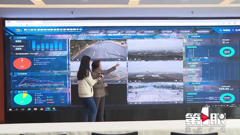 走进园区大楼后,记者来到智慧园区指挥中心,一块硕大的电子屏幕上显示着各种数据和监控画面。原来,这是一个智能化的智慧园区基础应用平台,通过建立完整的企业资料库,来打通企业日常经营数据的采集到动态分析的过程。